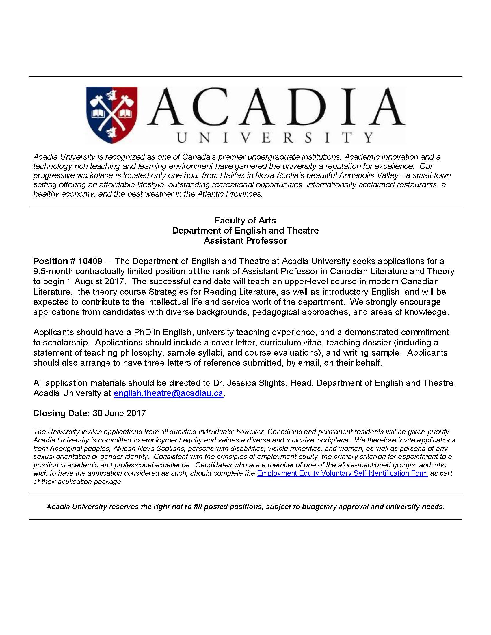 Accute On Twitter Jobs Two Limited Term Positions At Acadia U Canadian Literature And Theory And Postcolonial Literature Https T Co K4s5sdbabk Twitter