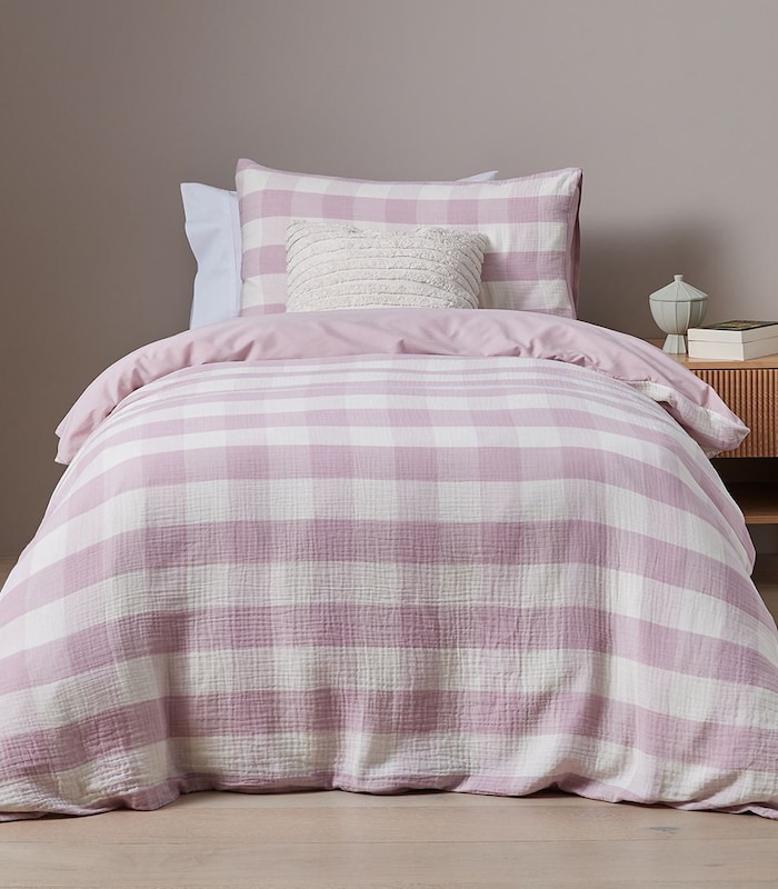 Remi Gingham Quilt Cover Set Lilac Target Australia